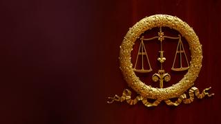 File picture of the scales of Justice seen on the podium of the National Assembly’s speaker during a debate session on the 2025 budget bill in Paris, France