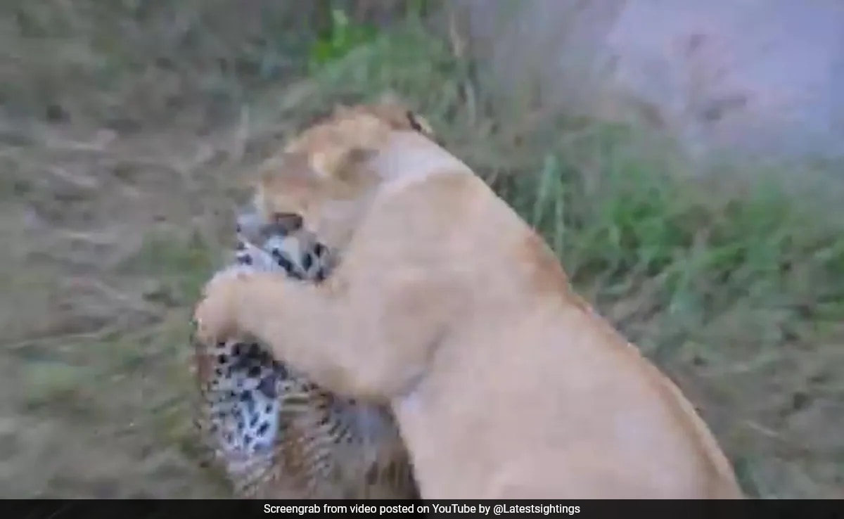 • Mother Leopard Fights A Lion Head-On, Saves 2 Cubs In Africa World