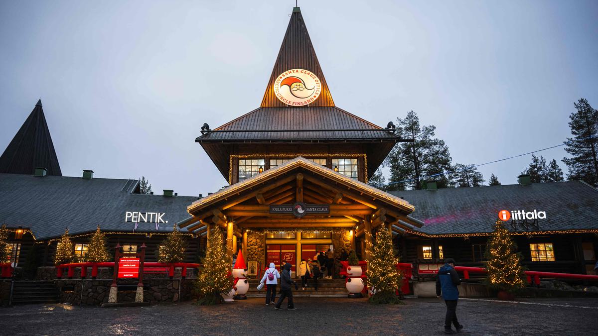 Tourists visit the Santa Claus Village during a rainy day, on November 16, 2024, near Rovaniemi, Finnish Lapland. With a month to go until Christmas, Santa Claus is busy preparing, but the warming climate and lack of snow in his Arctic hometown have him worried.